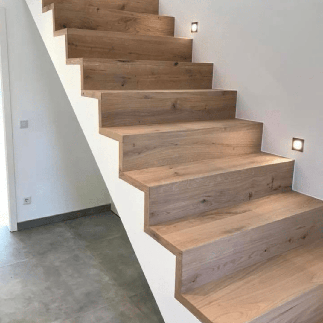 Mit einer Verkleidung aus Vinyl oder Parkett kannst Du das Aussehen und die Funktionalität Deiner Treppe schnell und kostengünstig verbessern. Schluss mit langwierigen und störenden Baustellen bei dir Zuhause - in nur 1-2 Tagen erstrahlt Deine Treppe in neuem Glanz und verleiht Deinem Zuhause einen modernen Look, der Dich und Deine Gäste beeindrucken wird. Durch die Renovierung sparst Du nicht nur bares Geld, sondern leistest auch einen Beitrag zur Nachhaltigkeit, indem Du vorhandene Materialien wieder verwendest.